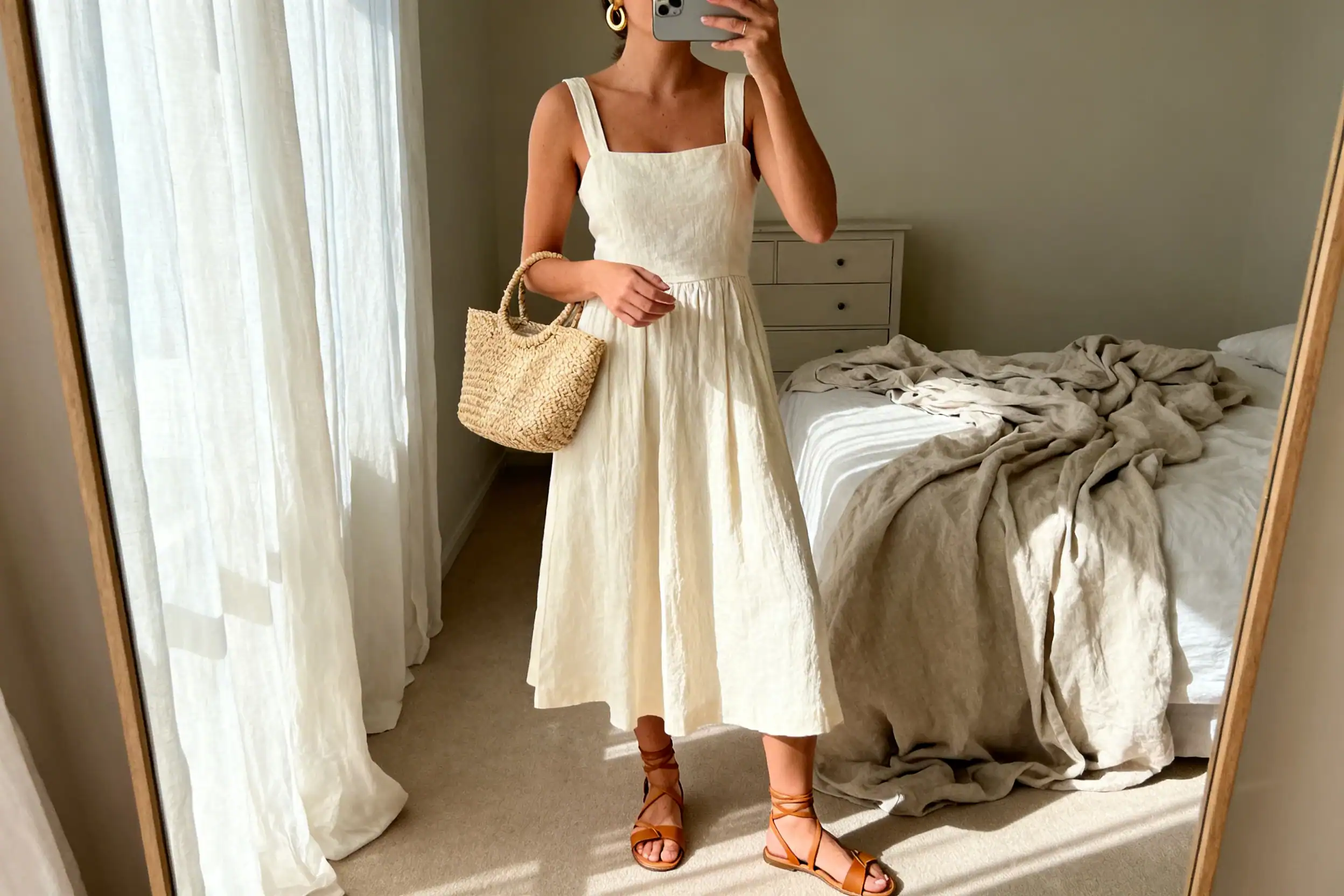 A breezy linen midi dress is one of those forever pieces that makes summer outfits feel polished, relaxed, and quietly expensive.