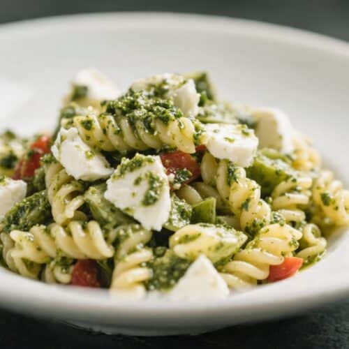 Pesto Mozzarella Pasta Salad is proof that simple ingredients can deliver huge flavor.