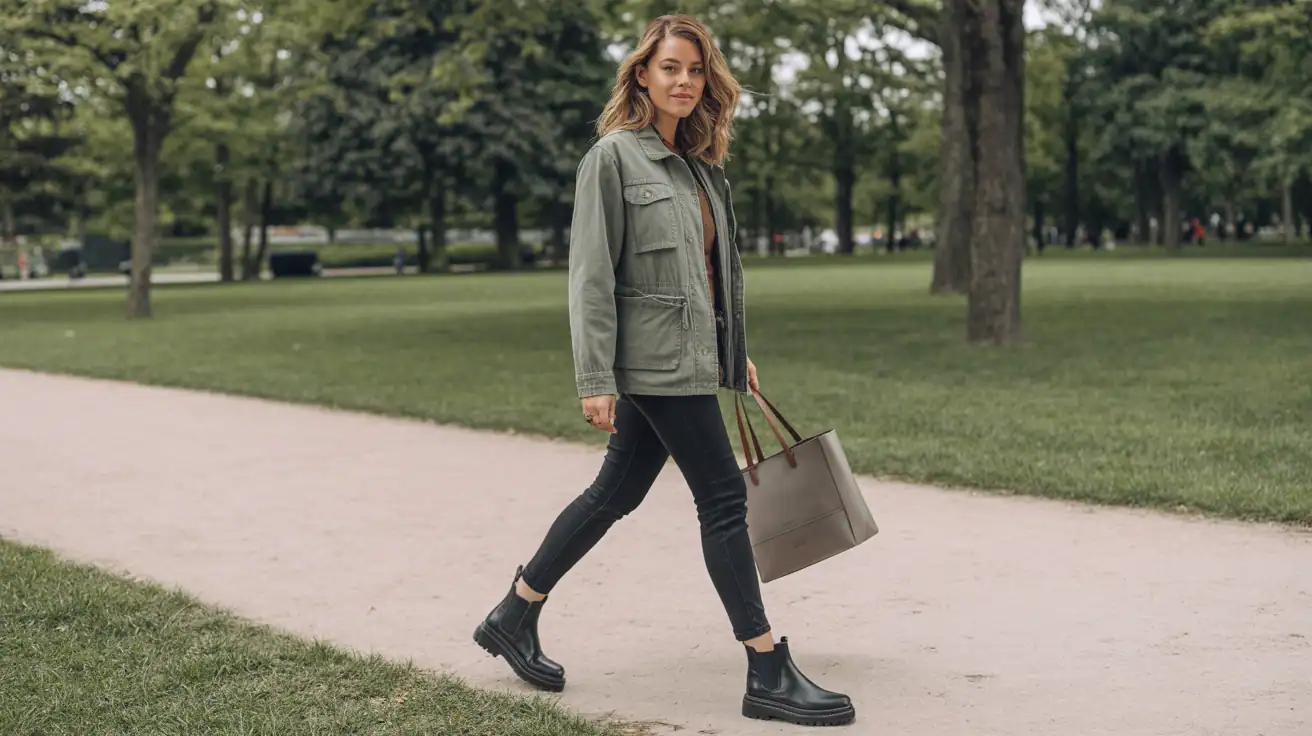 Utility is having a moment because it’s functional and cool. A structured utility jacket layered over black jeans feels crisp and city-ready, especially in cool weather. It’s unfussy and sharp—like you’re about to lead a weekend adventure.