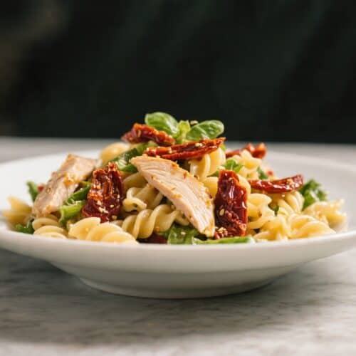 This Sun-Dried Tomato Chicken Pasta Salad is the kind of dish you make once and keep coming back to. It’s bold, fresh, and loaded with texture—tender pasta, juicy chicken, and lots of tangy, herby flavor. It works just as well for a weeknight dinner as it does for a picnic or potluck.